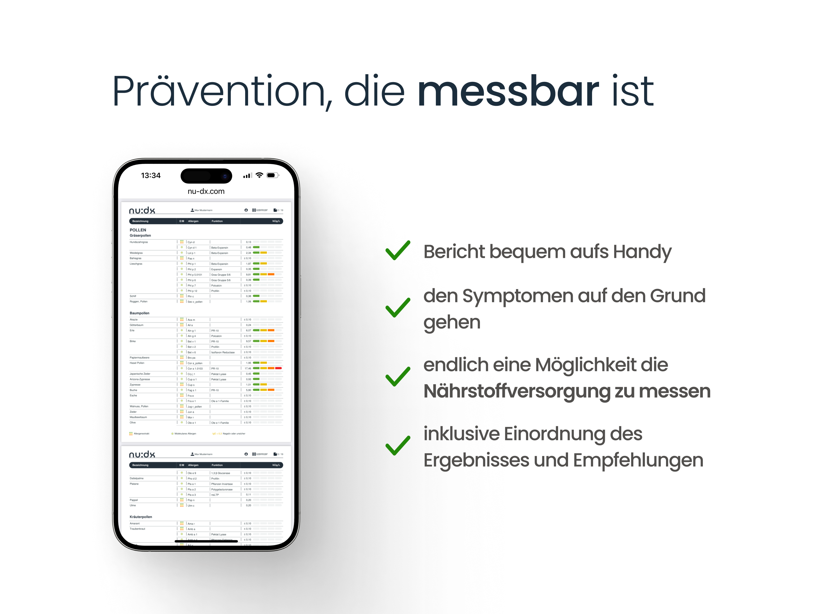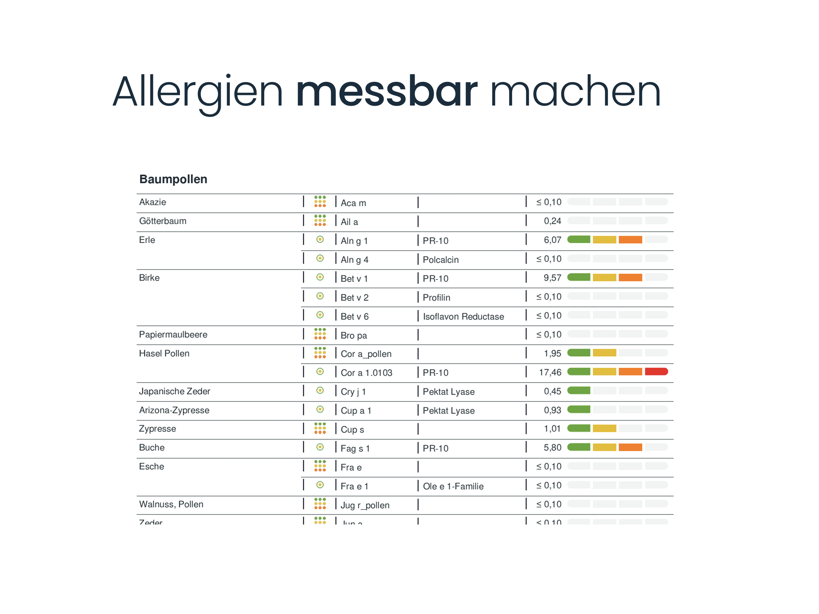 Nach dem Test bekommst Du einen zuverlässigen Laborbefund sowie einen digitalen Ergebnisbericht, der Dir verständlich erklärt, was Deine Werte bedeuten und welche nächsten Schritte empfohlen werden, um Deine Allergien effektiv zu managen und Deine Lebensqualität zu verbessern.