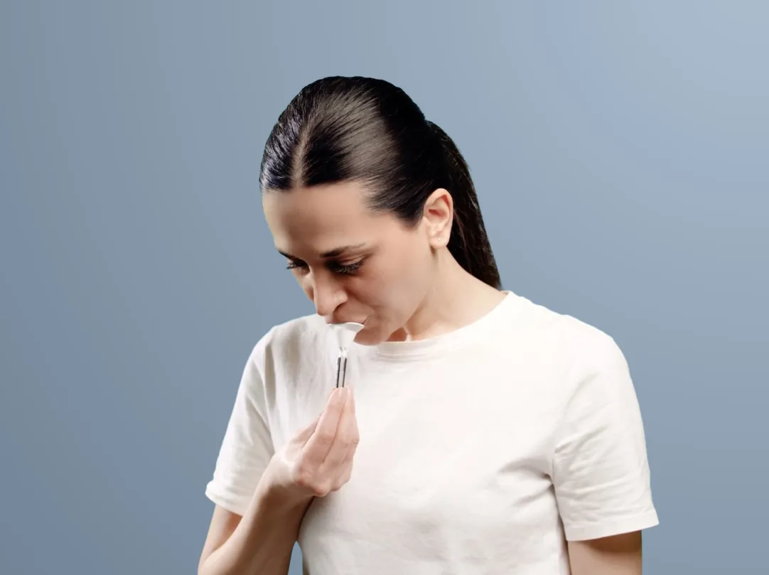 Die Probenentnahme geht dank der unkomplizierten Speichelprobe ganz einfach und ist vollkommen schmerzfrei.